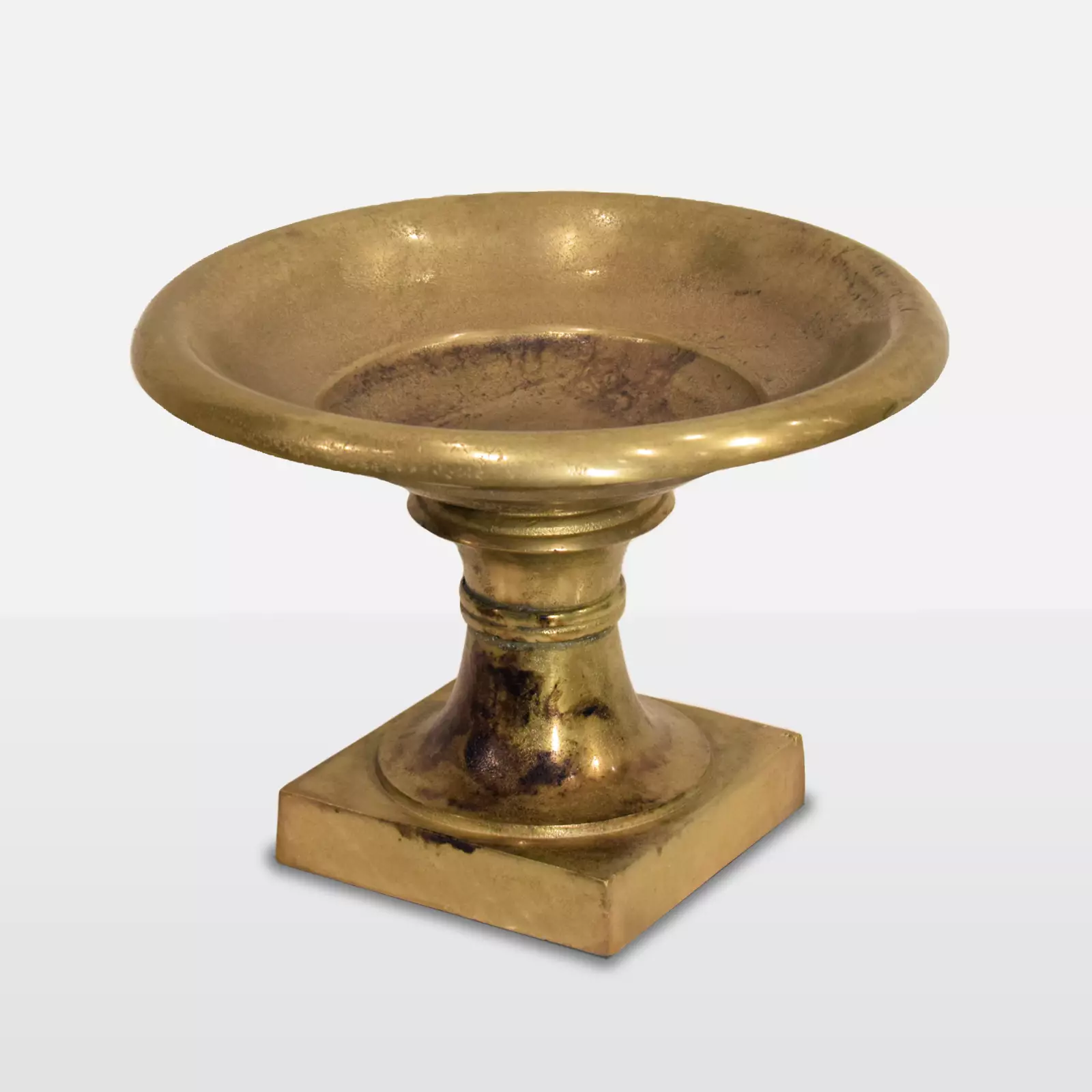 این ظرف میوه خوری طلایی رنگ، به صورت یک دیس پایه دار است که دیس گرد، و پایه ی آن مربع شکل است. شاید بتوان این تفاوت فرم را به منظور ایجاد حس تفاوت در کارکرد دانست.