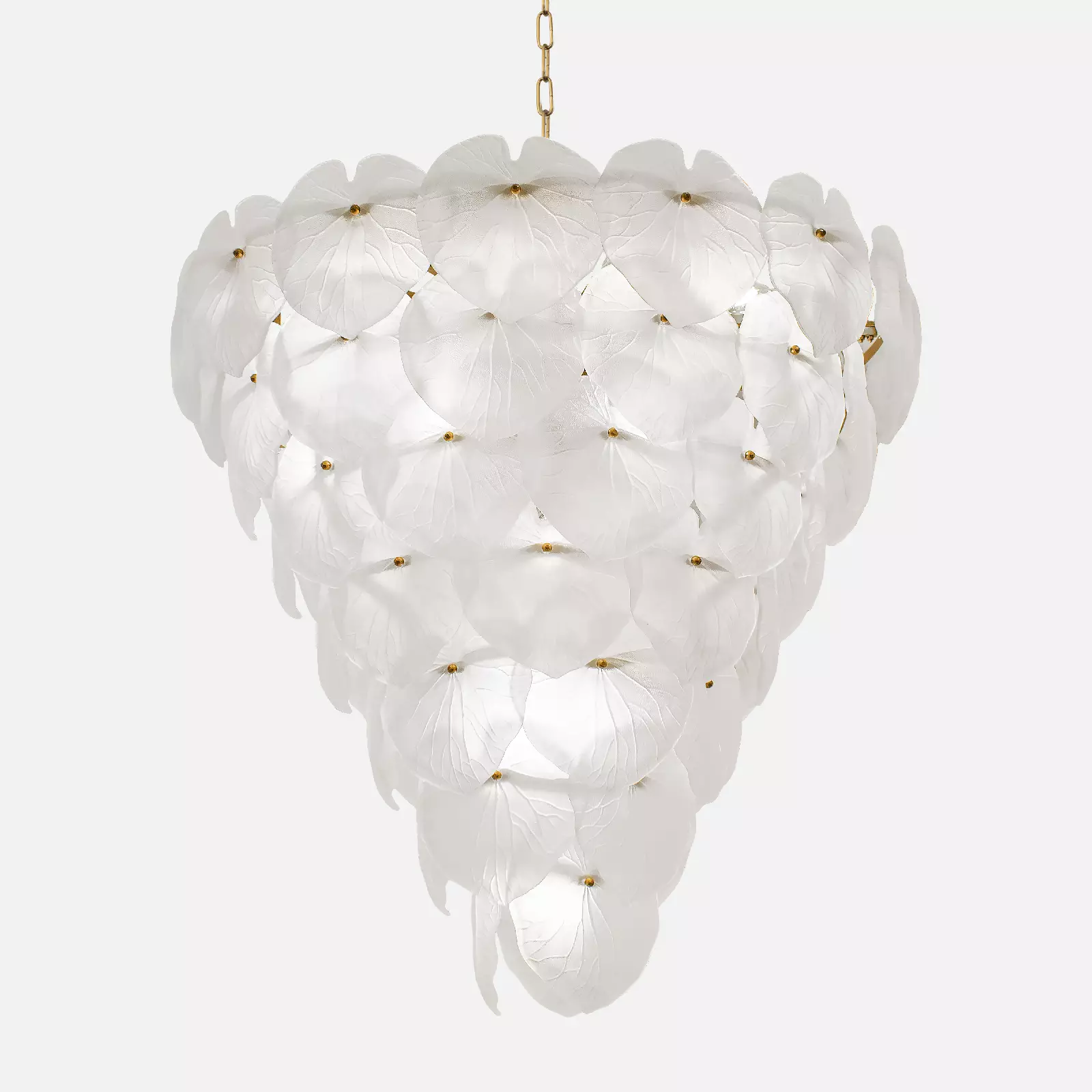 کریستال های برگ این لوستر به نسبت بزرگ (قطر نزدیک به 20 سانتی متر) هستند و یک فرم نزدیک به دایره دارند. دایره ای که در یک قسمت فرو رفتگی داشته و در سمت دیگر تیزی برگ آن خود نمایی می کند. فرم برگ در محل اتصال تو رفتگی دارد، و در اطراف آن برآمده شده است که باعث می شود از حالت صاف خارج شده و به شکل بخشی از کره دیده شود.