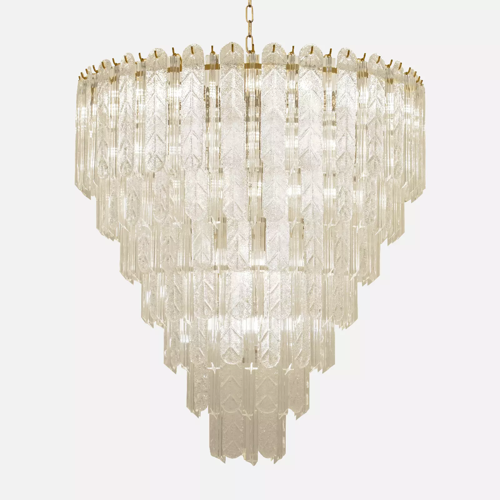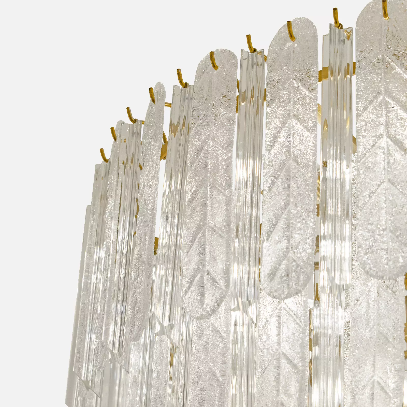 کریستال شبه برگ لوستر طبقاتی گرد ثمین، یک کریستال قالب خورده و کشیده است، که در اصل یک فرم مستطیلی با گوشه های فیلت شده است، طوری که طرفین آن را دو نیم دایره تشکیل داده اند.