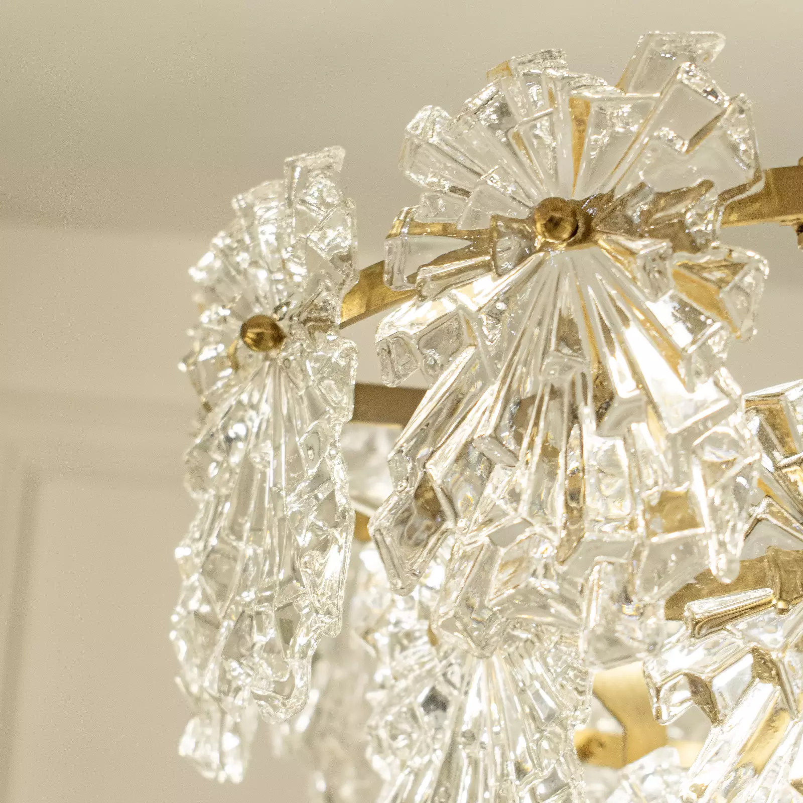 وجودی سطوح سه ضلعی و یا چهار ضلعی متناوب و متقاطع، باعث می شود که کریستال های لوستر گرد کریستالی گیتا 50 ، همان طور که فرمی شعاعی دارند، باز تابنده پرتوهای نور در زوایای مختلف نیز باشند. حتی شکست نور باعث می شود که در زوایایی، خطوط شکسته ی کریستال ها هم رنگی طلایی به خود بگیرند که بسیار جالب توحه است.