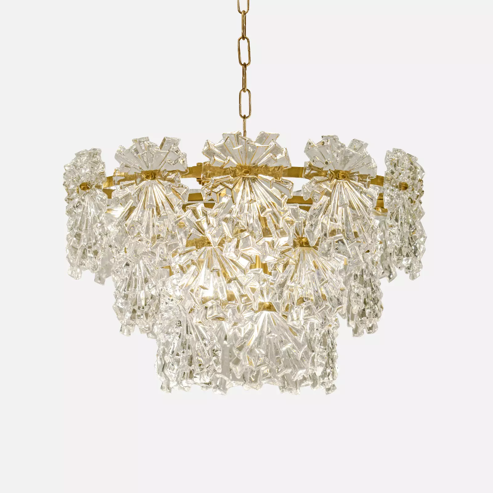 این لوستر به نوعی لوستری طبقاتی است، که در سه طبقه طراحی شده است، ولی هم پوشانی کریستال ها باعث می شود که ساختار یک ساختار یکپارچه دیده شود.