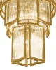 تنها المان های افقی در این لوستر، خطوط پایینی فریم های فلزی طلایی رنگ هستند، که همان ها هم مرزسازی می کنند و ذهن را در خود به دام می اندازند. در واقع همین خطوط افقی هر فریم هستند که فاصله ی بین طبقات را ایجاد می کنند.